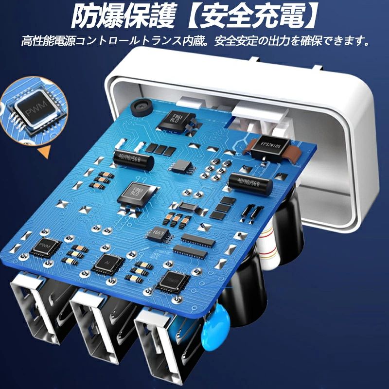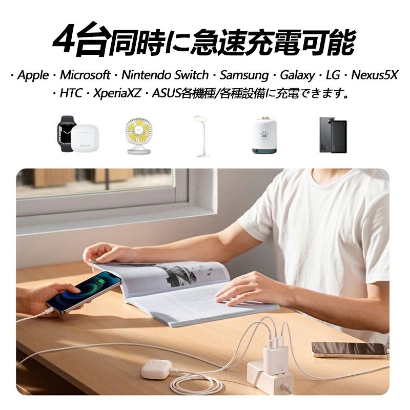 USB4ポート 3.1A急速出力 時間節約 急速充電器