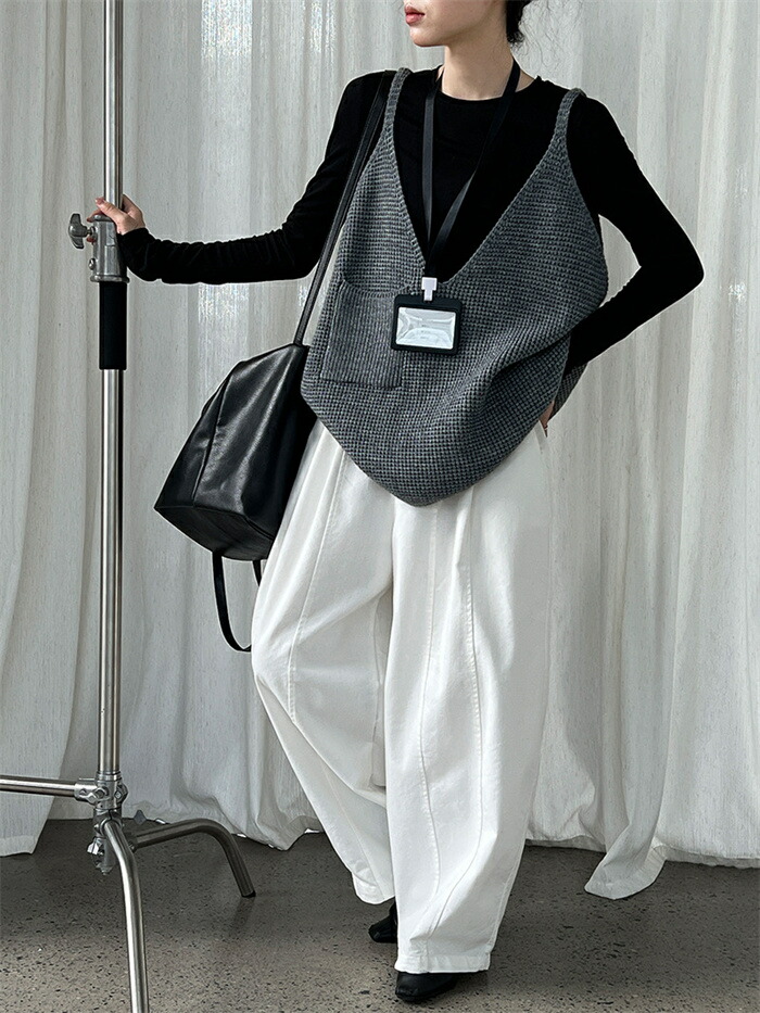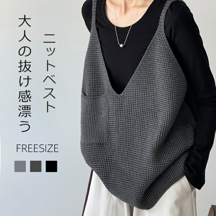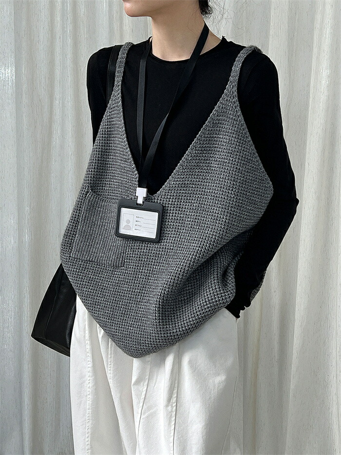 レディース 秋 ベスト vネックベスト レディースファッション 早い者勝ち ダークグレー グレー ブラック
