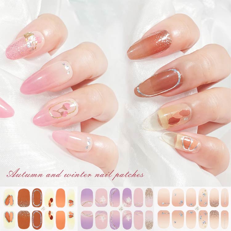 5シート入り(60枚セット)【ご使用前に】●爪に油分や水分、汚れが付着しているとシールが剥がれやすくなりますので、爪の表面をキレイに拭き取ってください。●甘皮を処理し、付属のファイルなどで爪の形や表面を整えるとよりキレイに仕上がります。●シートからネイルシールを剥がす際にはシートの外側部分を持って剥がしてください。(1)製品を爪に合わせ、爪よりも少し小さめのネイルシールをお選びください。(2)キューティクルラインと1mmほどの余裕があるところにネイルシールを貼ってください。(3)ネイルシールを貼って余りのシールは爪の形に合わせて折ってください。ファイルを利用して、爪の下の方向に向けて余りのネイルシールを削ってください。(4)お好みの硬化方法を選んでください。・寝る前に貼り硬化する場合・自然光で硬化する場合:約2時間(自然光が多い室内と室外にて)・UV&LEDライトで硬化する場合:約30秒【剥がし方】●ウッドスティックでキューティクルラインからゆっくり押出しながら剥がしてください。