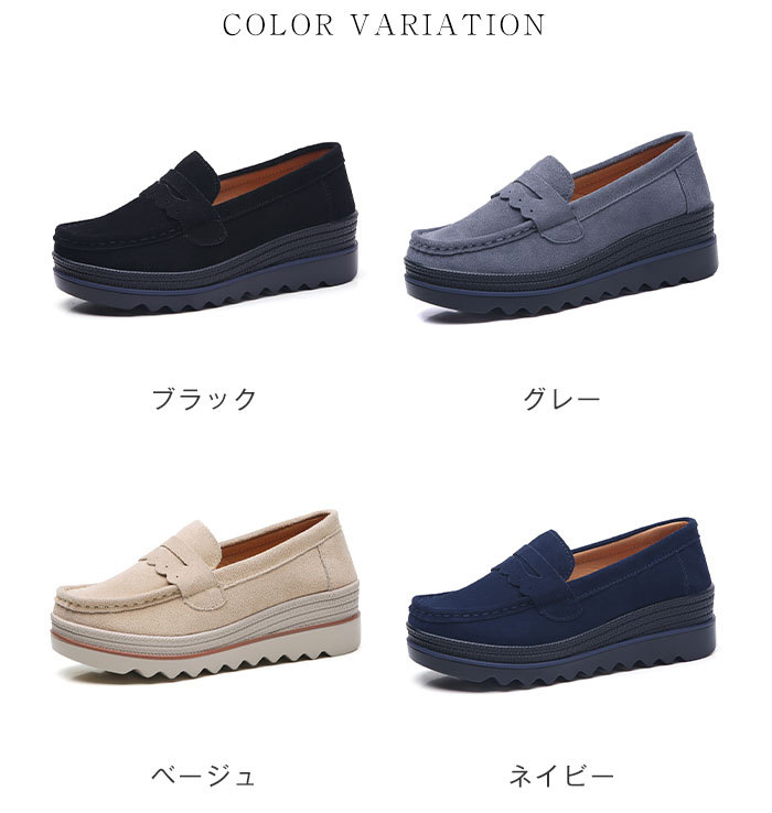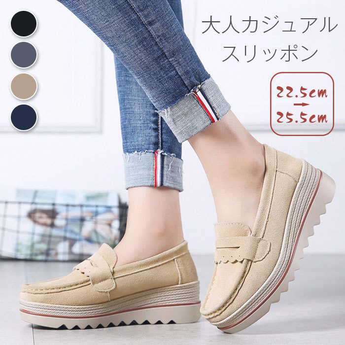 厚底スリッポン 軽量 レディース 靴 靴 新登場! ブラック グレー ベージュ ネイビー 35 36 37 38 39 40 41