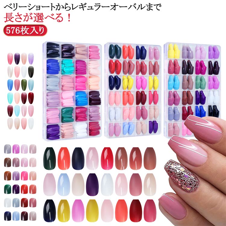 ネイルチップ ジェルネイル 576枚入 01 02 03 04 05 06 07