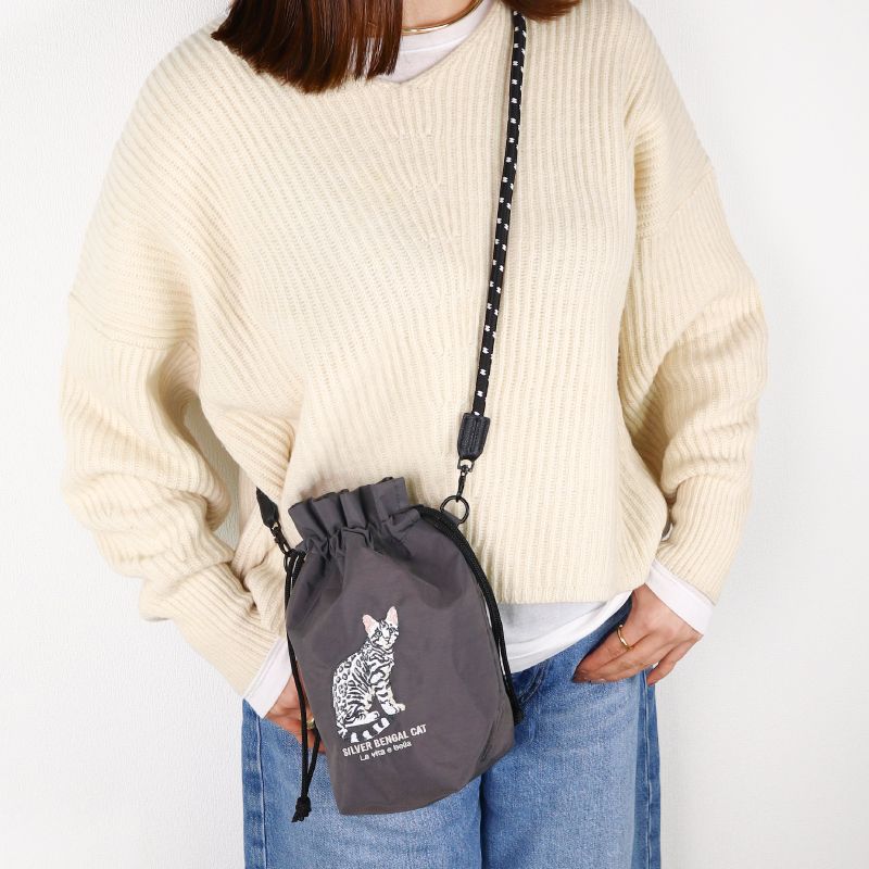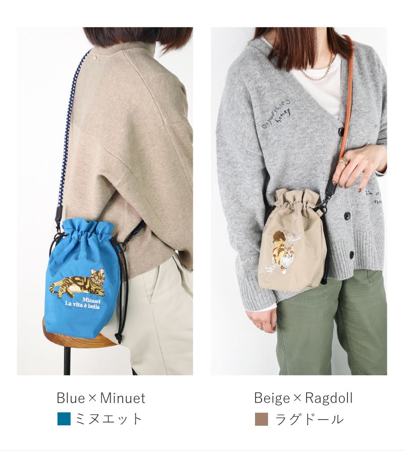 \SNSで話題/ 巾着袋 ドローストリングバッグ 猫ナイロン 巾着ショルダー ワンマイル 軽量 バッグ アニマルショルダーバッグ 犬 猫 アニマル刺繍 旅行 サブバッグ レディース アニマル 巾着 シ