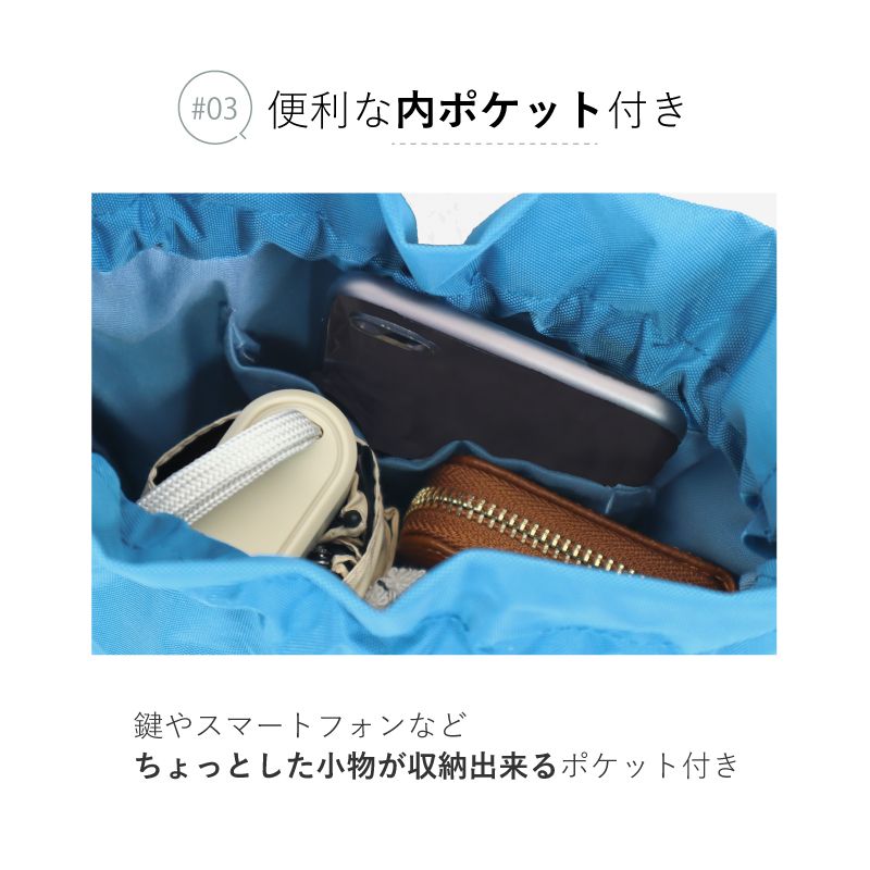 ●鍵やスマートフォン、ちょっとした小物などを収納可能なポケット付き。