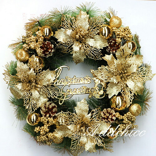 クリスマスリース 直径約40cm リー ゴールド レッド