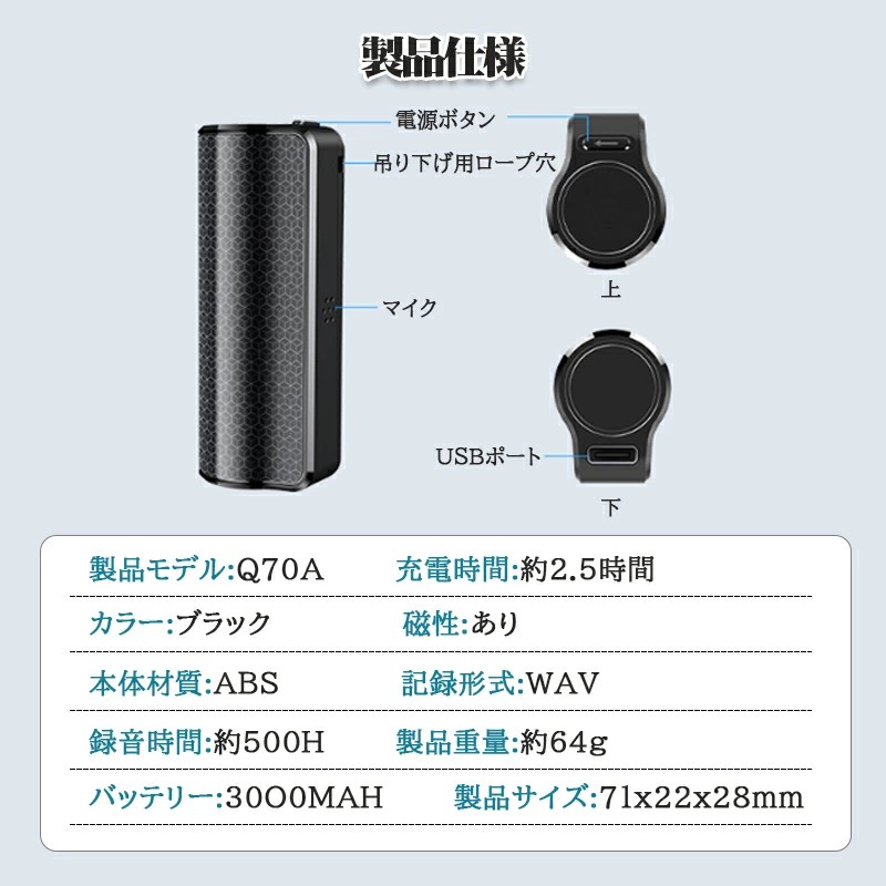 小型で目立たない外観を持ち、磁力で固定できるため、設置場所を選びません。商談や会議、インタビューなど、さまざまなシーンで使うことができる柔軟性が特徴です。必要に応じて迅速に配置し、自然な形で記録を開始することが可能です。