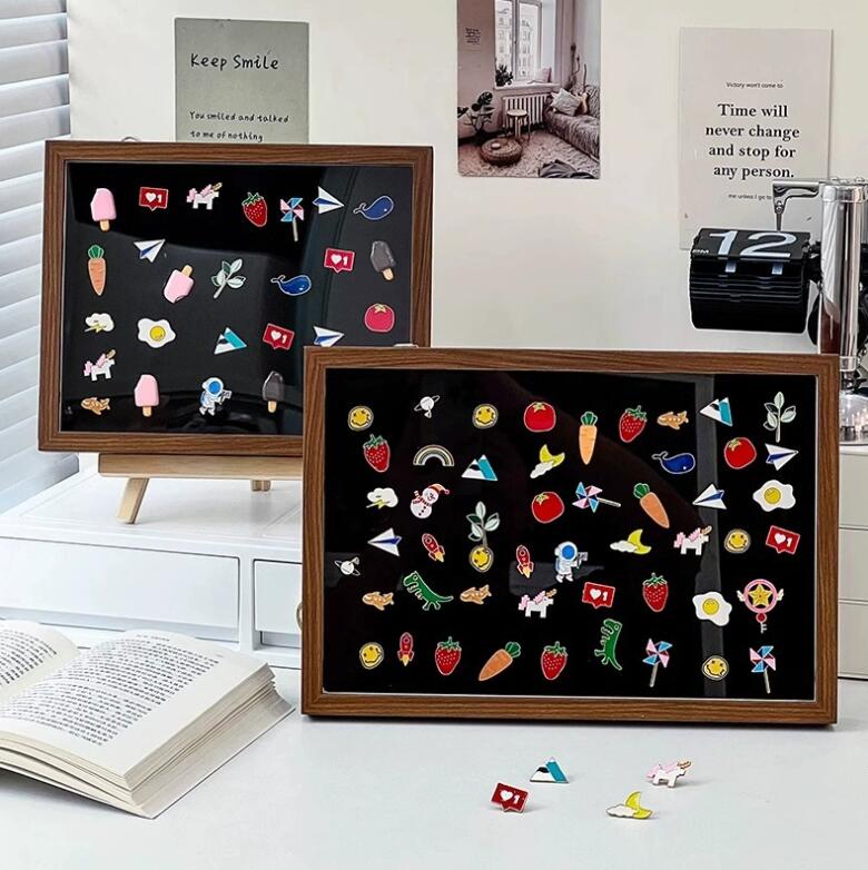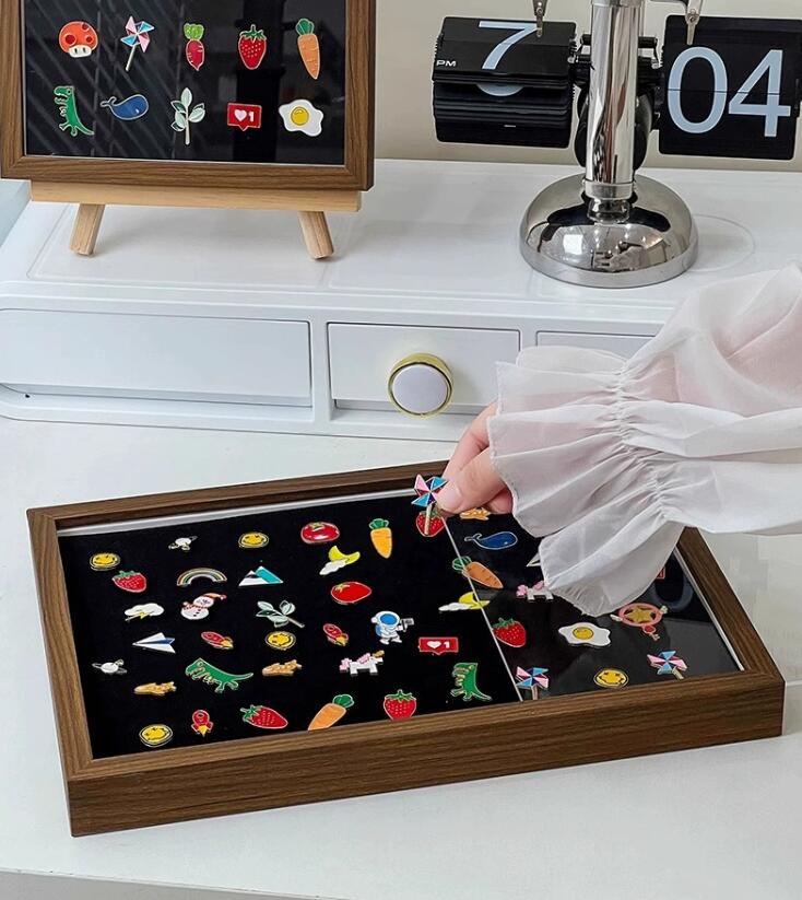 ピンバッジ ケース 透明窓木製ピンディスプレイケース ピン缶バッジ 収納ケース エナメルピンミリタリーバッジメダルディスプレイケース 収納可能 防塵 ピンズフレーム