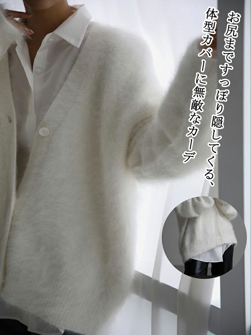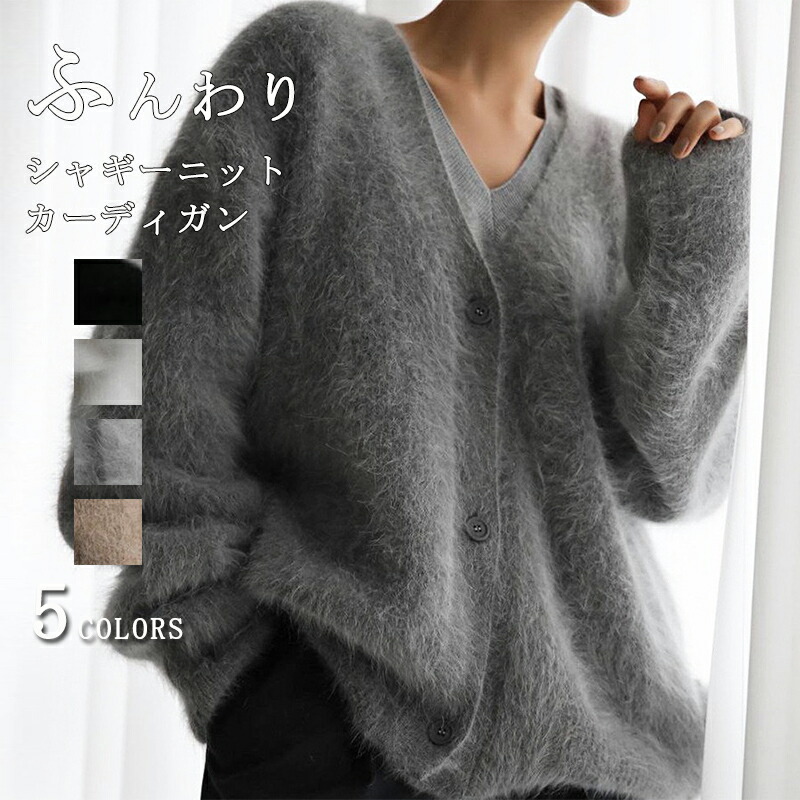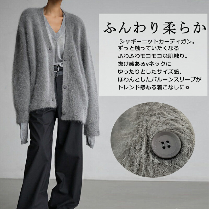 フェザーヤーン カーディガン 長毛 シ レディースファッション 新作 ホワイト グレー ダークグレー ブラウン ブラック