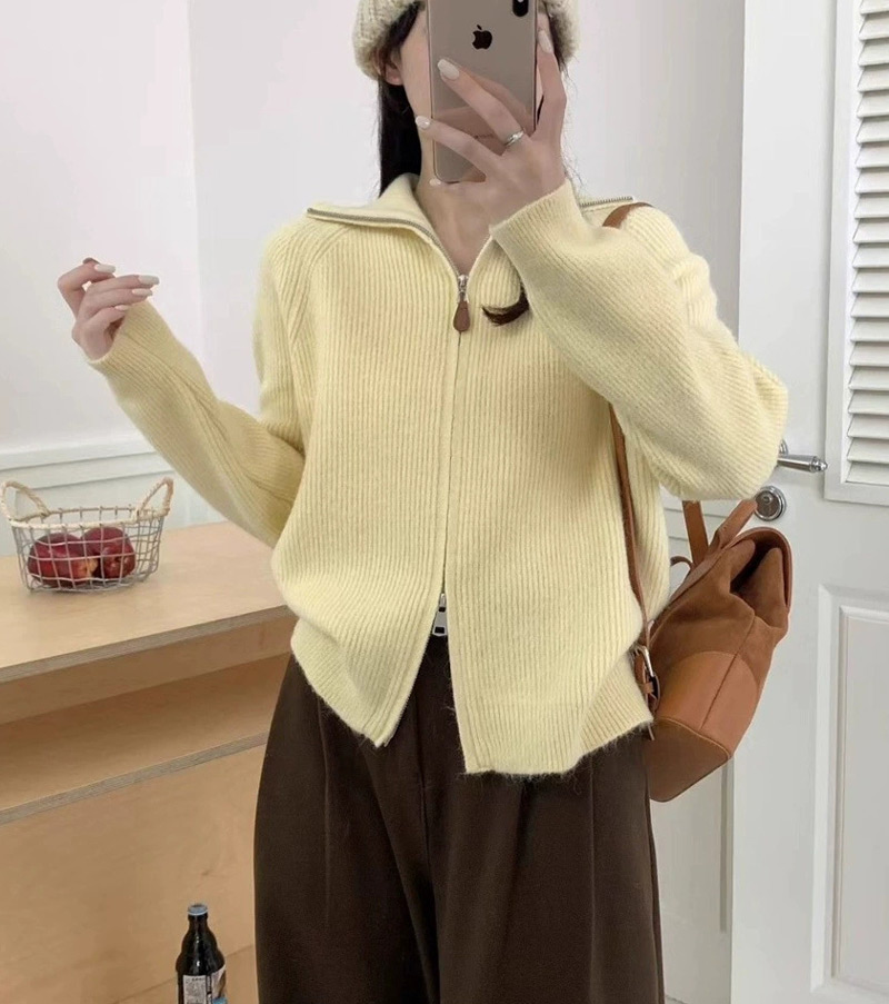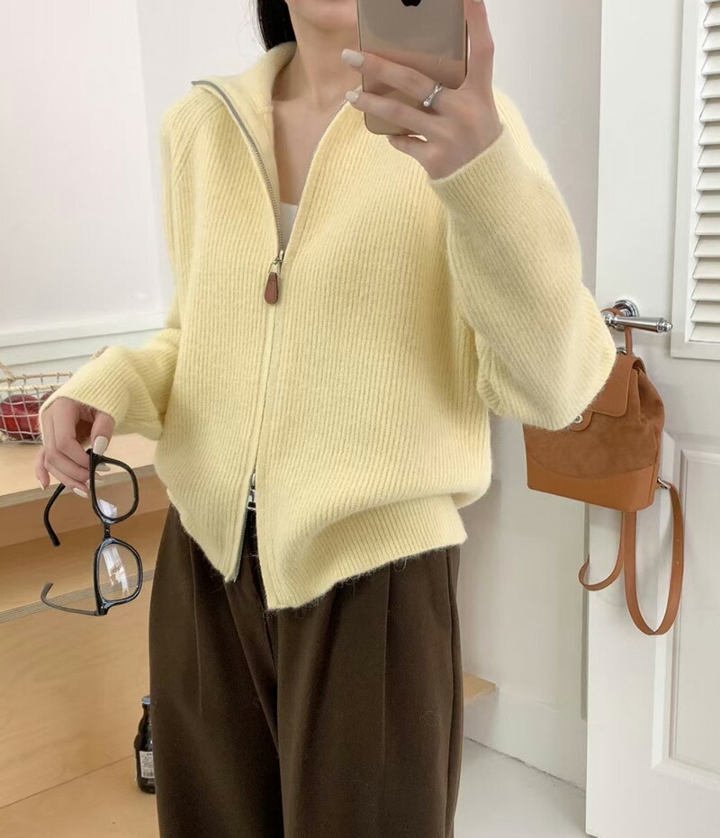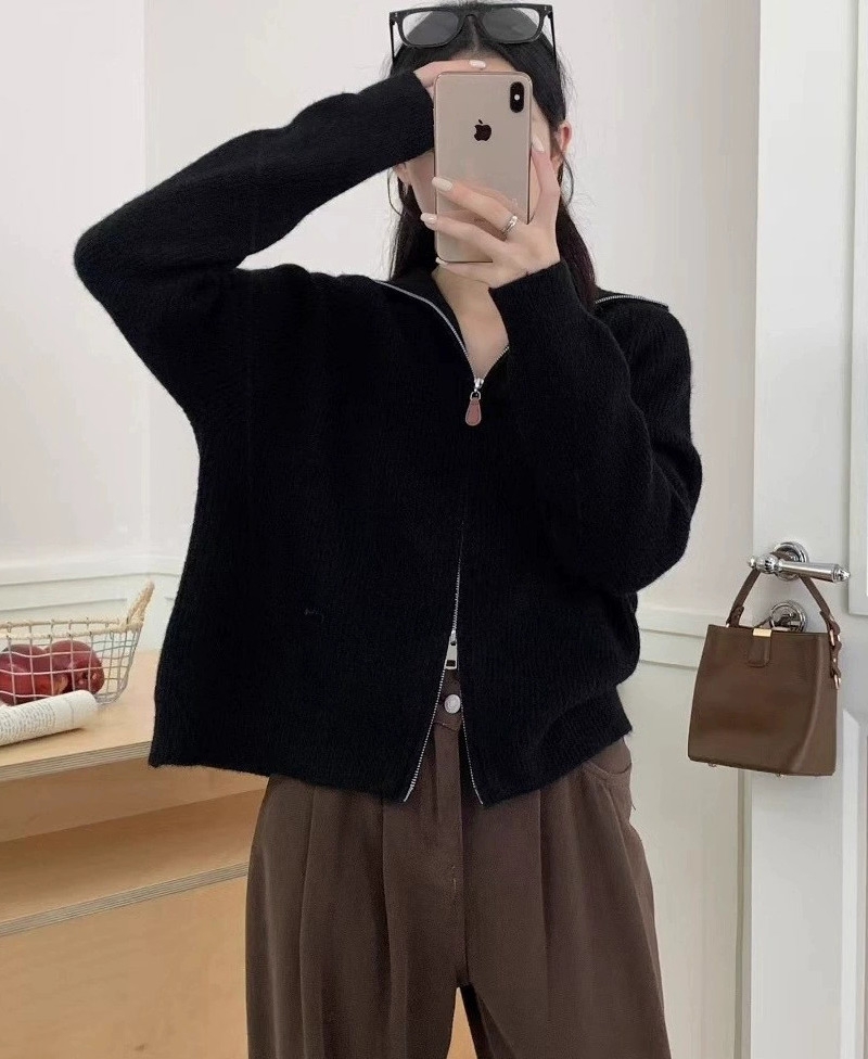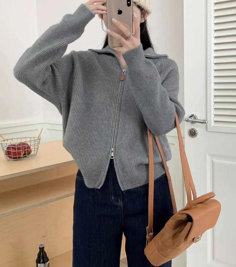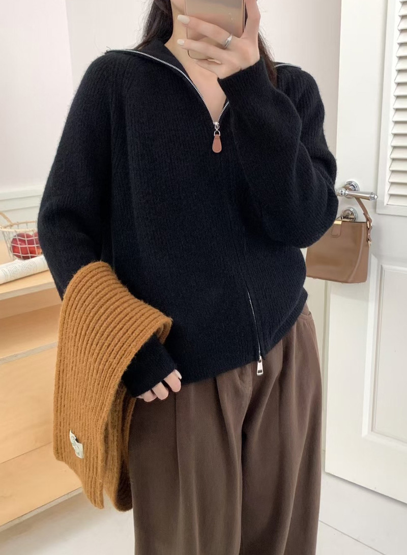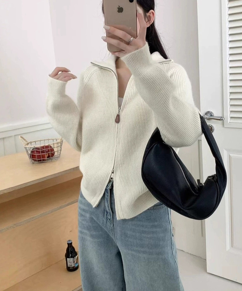 ダブルジップ ニット Wジップ ニット トップス ニット セーター ニットパーカー 続々登場 グレー ピンク ベージュ レッド ホワイト ブラック ブルー イエロー