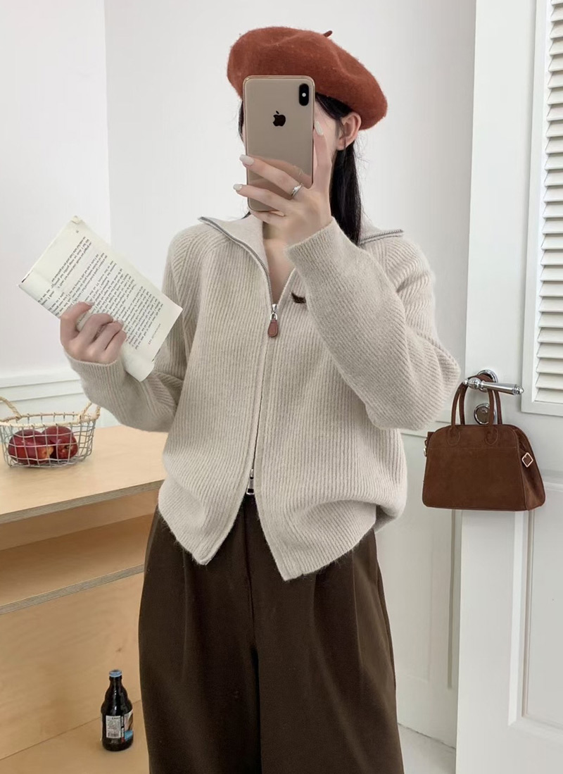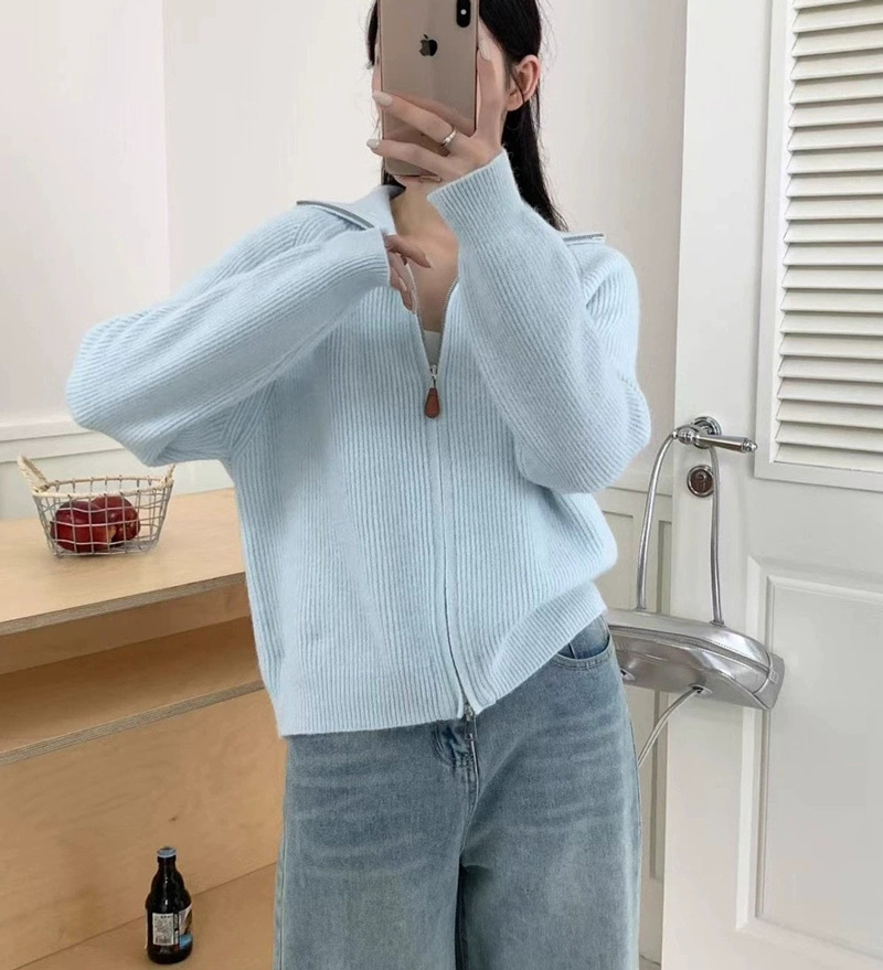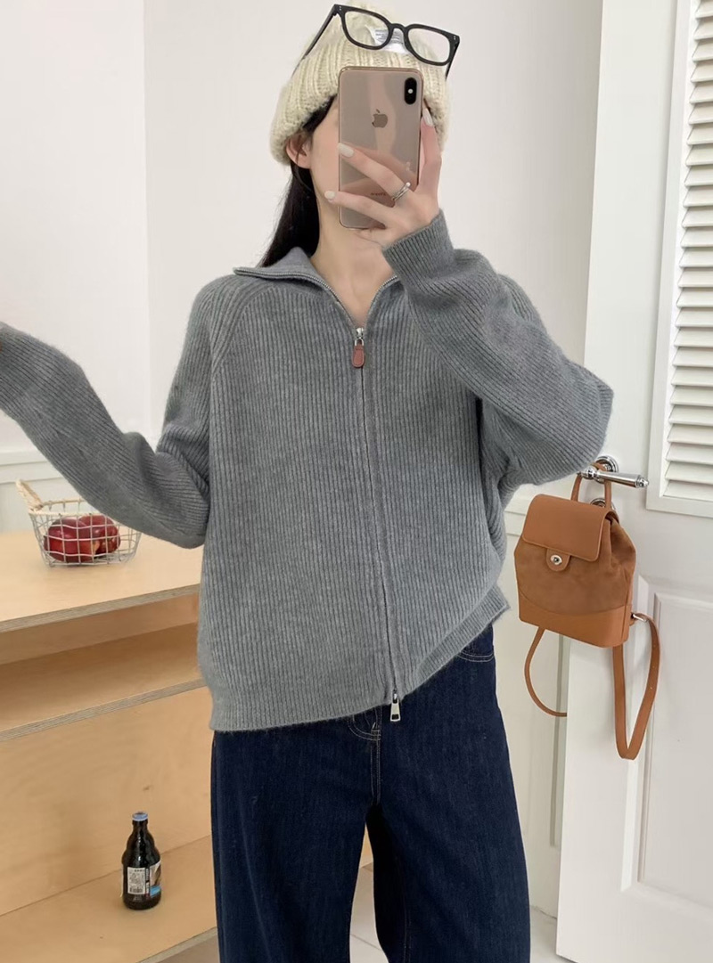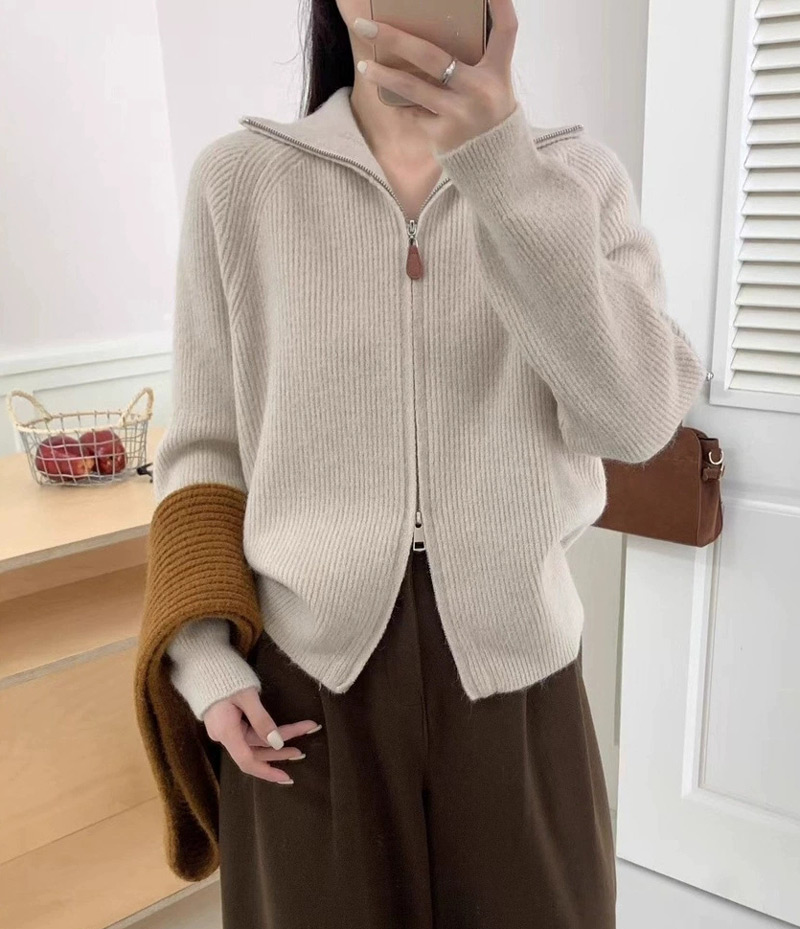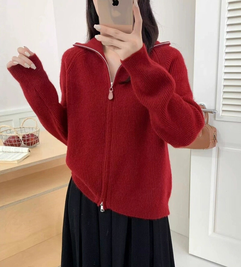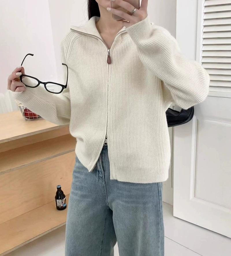 ダブルジップ ニット Wジップ ニット トップス ニット セーター ニットパーカー 続々登場 グレー ピンク ベージュ レッド ホワイト ブラック ブルー イエロー