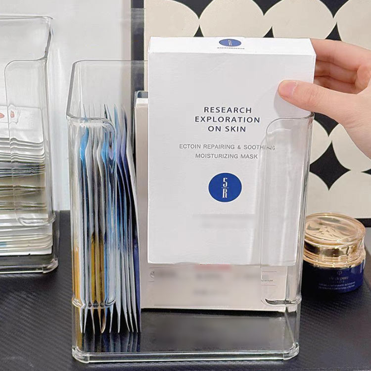【マスク専用保護】独立した収納スペースで、フェイシャルマスクの変形やこぼれを効果的に防止。泥パックや化粧品ブラシも収納でき、デスクトップ化粧台の整理を楽しくサポート。