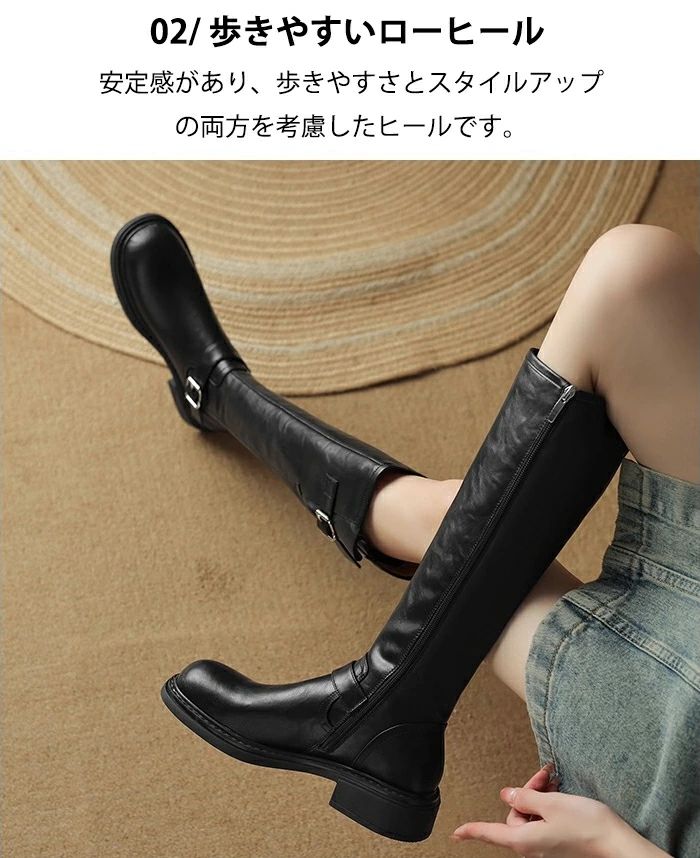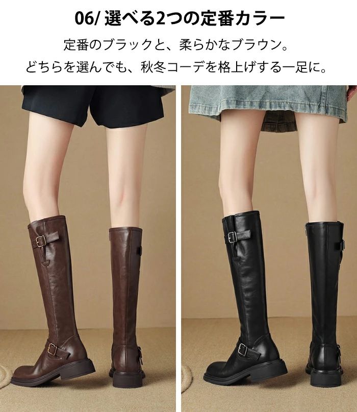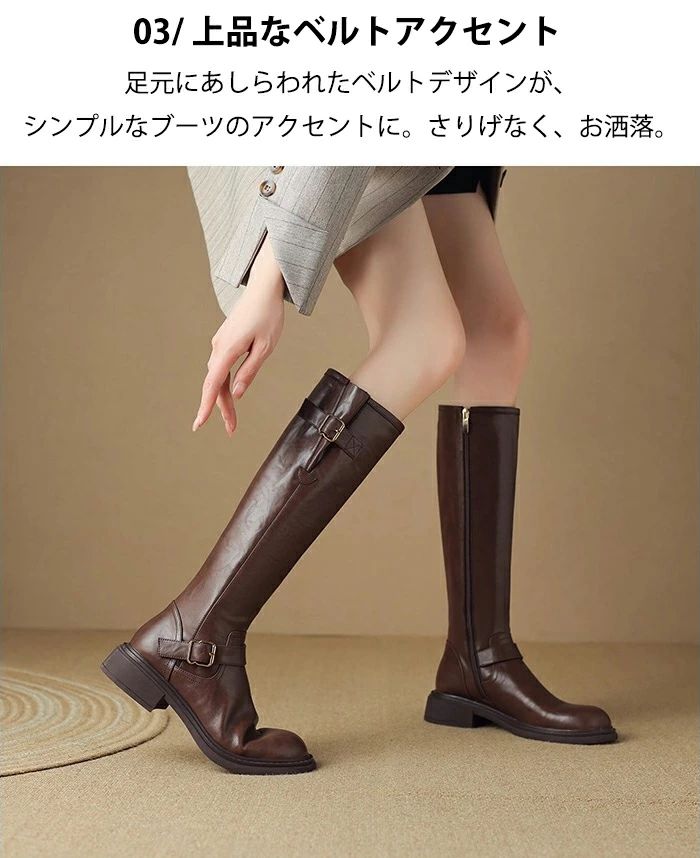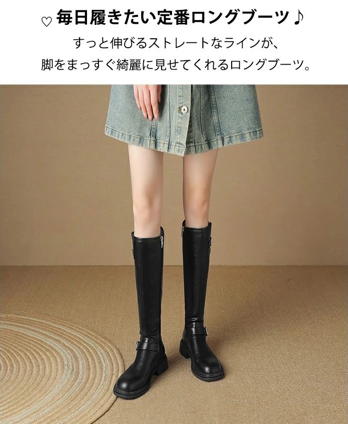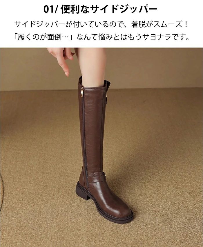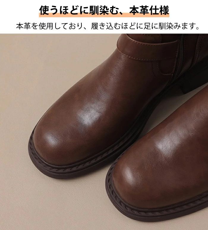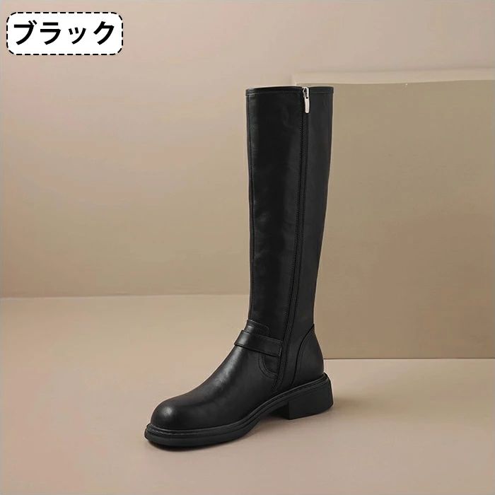 太ヒール 本革 ロング丈 ローヒール 靴 人気 ブラック ブラウン 35(内寸22.5cm) 36(内寸23cm) 37(内寸23.5cm) 38(内寸24cm) 39(内寸24.5cm) 40(内寸25cm)