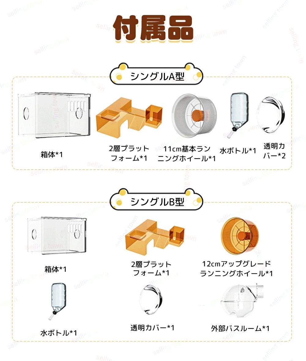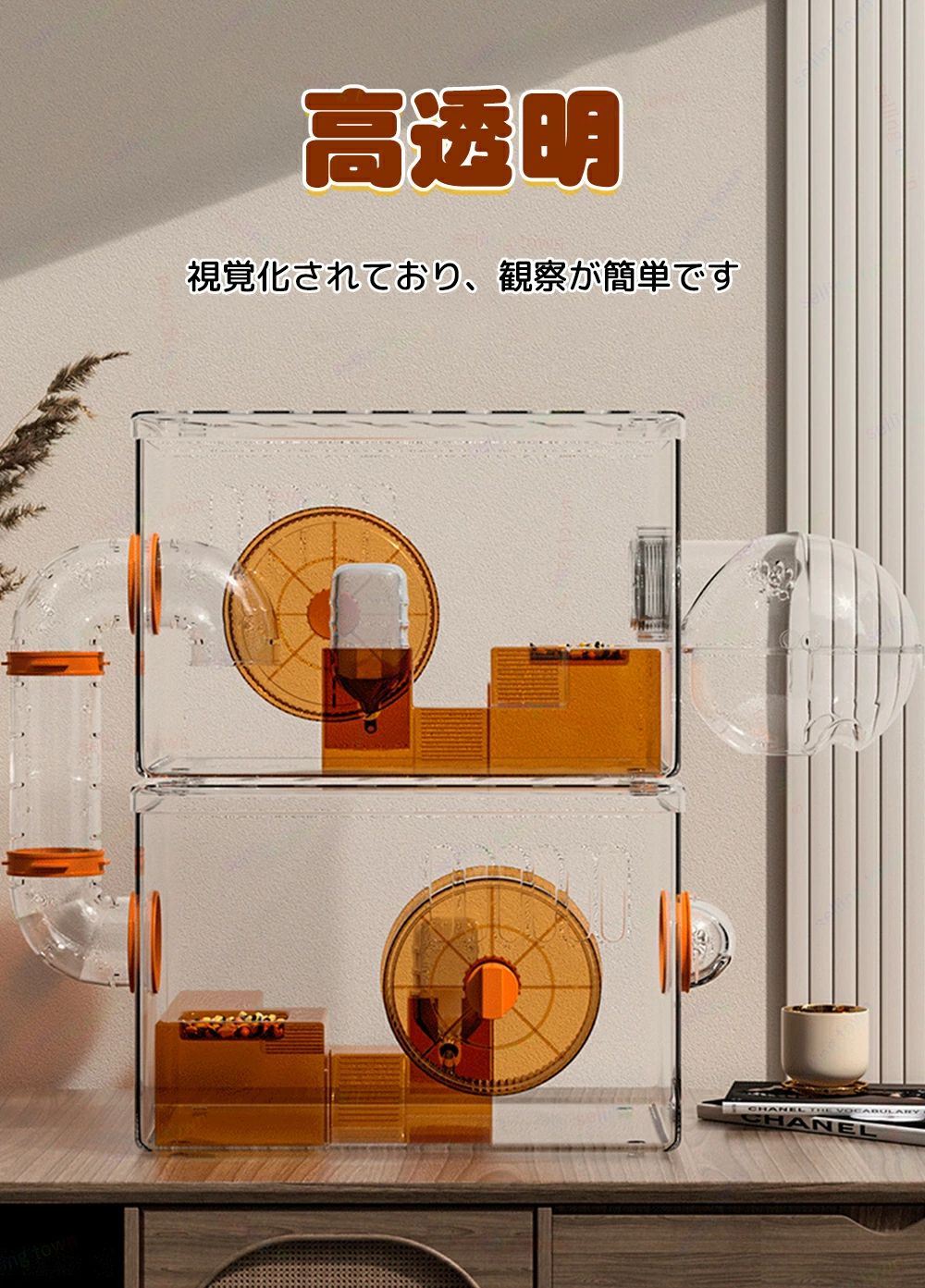 ハムスター ケージ 透明 DIY可能 オレンジ グリーン ブルー シングルA型 シングルB型 ダブルレイヤーA型 ダブルレイヤーB型