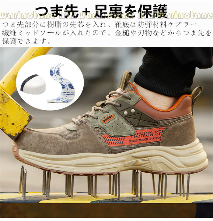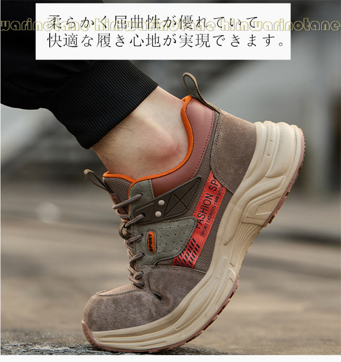安全靴 メンズ レディース ハイカット ブラウン カーキ グレー 24cm(38) 24.5cm(39) 25cm(40) 25.5cm(41) 26cm(42) 26.5cm(43) 27cm(44) 27.5CM(45)