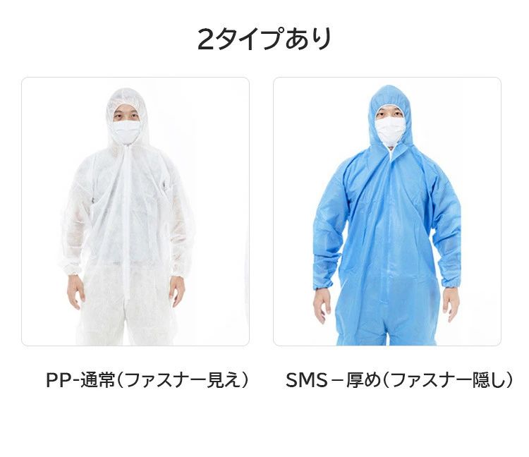 10枚入り 防護服 保護服 使い捨て メンズファッション 人気 M L XL XXL 3XL 白(PP-通常防塵):3630円税込 ブルー(PP-通常防塵):3630円税込 白(SMS-厚め防水):7150円税込 ブルー(SMS-厚め防水):7150円税込