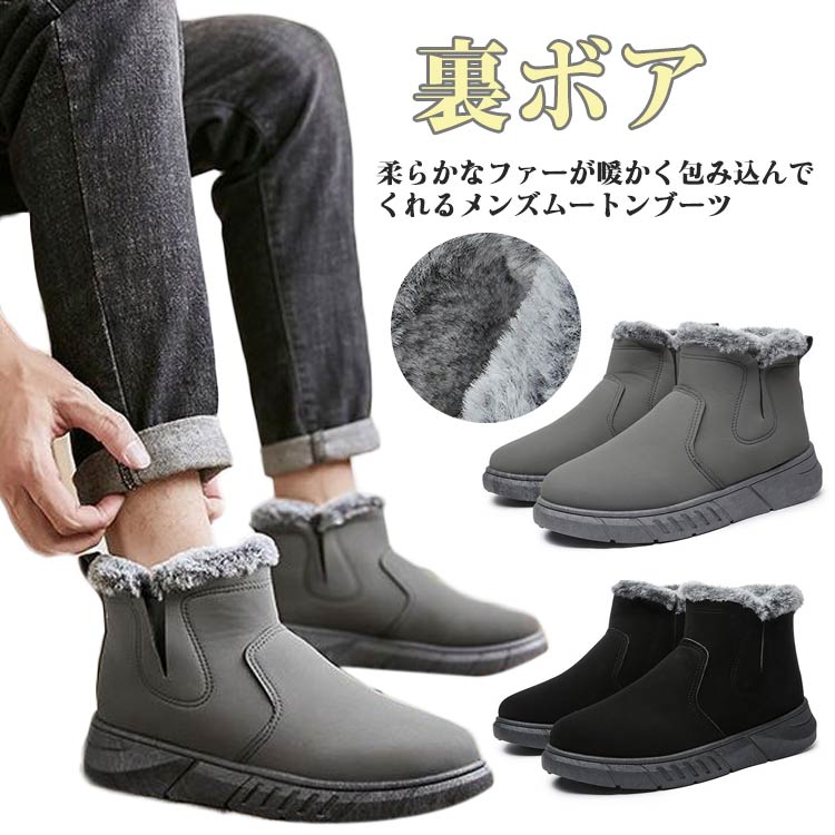 ムートンブーツ 冬 スノーブーツ ボア メンズ靴 ブーツ サイドゴア 豊富な品揃え グレー ブラック 39 40 41 42 43 44