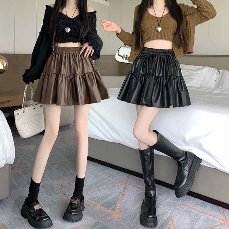 スカート 革スカート 通学 ミニスカー ボトムス スカート 通販 ブラック コーヒー S M L XL 2XL 3XL