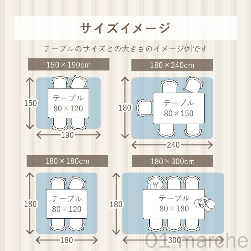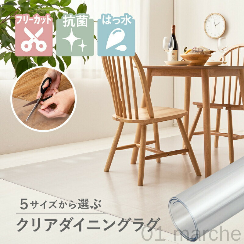 透明マット ダイニングラグ 撥水加工 90×150cm 150×190cm 180×180cm 180×240cm 180×300cm