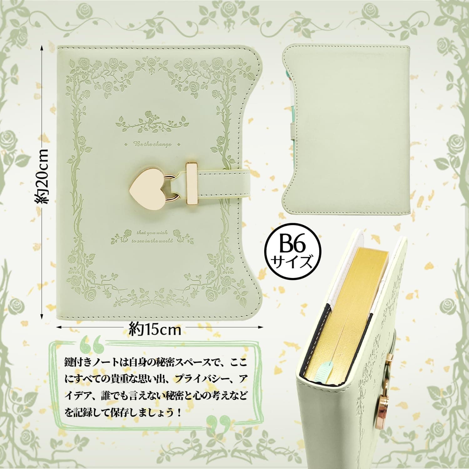 【秘密をしっかり守る鍵付き日記帳】ハートデザインのロックは大切な秘密とプライバシーを守るものとしてご愛用いただけます。鍵付きノートは自身の秘密スペースで、ここにすべての貴重な思い出、プライバシー、アイデア、誰でも言えない秘密と心の考えなどを記録して保存しましょう!B6サイズ手帳ノートは多くのカバンとバッグに入れますので、持ち運びにも便利ですよ!【プレゼントに最適な文房具セット】この鍵付きノートは自分用にも友人や同級生にもちょうど良いギフト:交換ノート、秘密ノート、勉強計画ノート、パスワード管理ノートなどの使い方が個人により様々あります。お正月♪・誕生日♪・成人式♪・記念日♪・入学式♪・卒業式♪の贈り物として、友人、家族、恋人、子供なの人々に適しています。年齢を問わず、小学生、中学生、高校生、大学生、サラリーマン、社会人、主婦などにおすすめします♪♪♪【オシャレなローズガーデン模様の防水PUカバー】柔らかい抹茶ミルク色、高級感のある手触りの良い質感のPUレザークロスは耐久性♪と防水力♪が物凄くいい!または、汚れが付いても簡単で清潔にします(≧∇≦)!ノートで学習と仕事計画や大切なことを毎日記録して、学習と仕事効率を向上させ、大事な目標が達成させ、時間管理術を身につけます。新学期準備、入学祝い、入職お祝いプレゼント、誕生日プレゼントとしてもいいですよ!【高自由度でたくさん書き込めるノート】この日記帳のページ数は360ページとなっているので、毎日使えば、一年間ぐらい書けます。日記をつけるのが趣味の方にとてもおすすめです!厚手でインクがにじみにくい紙を採用するので、ボールペンや万年筆のインクが滲む問題なしだけでわなく、鉛筆とシャープペンシルを使用する方に迷惑をかけの消しゴム繰り返し摩擦と、紙が破れる問題も無いです。着脱可なデザインはカバーは繰り返し使用は可能です!学校、オフィスでの使用が大活躍です!長く使える素敵物です♪♪♪【アメリカアマゾンでも大人気日記帳】アメリカで計186件の評価、5つ星のうちなんと4.7の高評価がもらいました、お客様から「外見がかわいい」「一目惚れ!かわいい」「リピ買いしたい」「姪の大好きな誕生日プレゼントです!」「とてもおすすめ!」などのご愛用のコメントがたくさんいただきました。※サイズ:約200×150×40mm 用紙サイズ:B6横罫線 カラー:ピンク ページ数:360ページ 材質:PUレザー※測り方により誤差が発生することがごさいます、予めご了承ください。