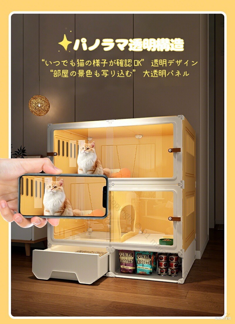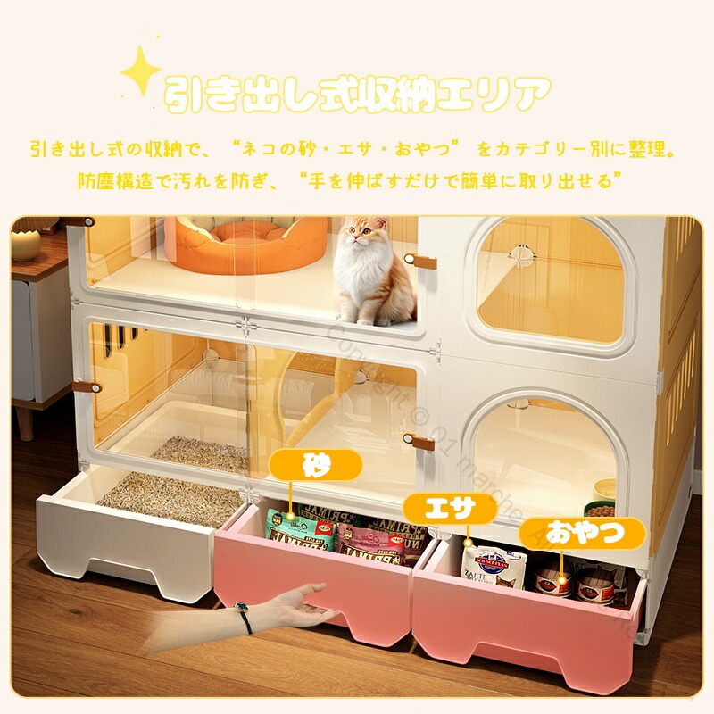 猫 ケージ キャットケージ トイレ付き 大型 2段 3段 猫ハウス 前面透明 引き出し付き 猫砂スコップ付き 掃除しやすい 脱走防止 快適スペース おしゃれな猫ペットケージ 多頭飼い