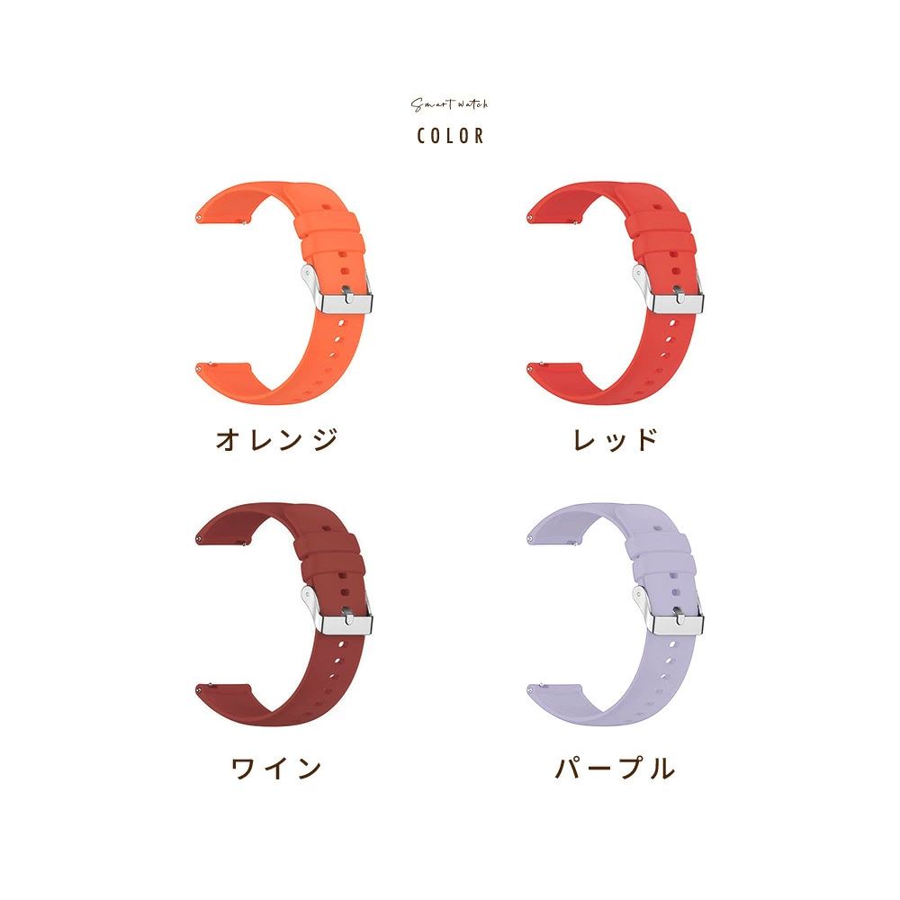 シンプル 単色 無地 22mm 20mm 幅18mm 汎用 付け替え バンド ラバー 交換用ベルト スマートウォッチ用 腕時計用ベルト シリコン