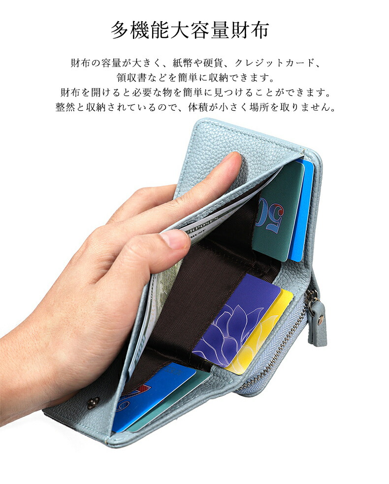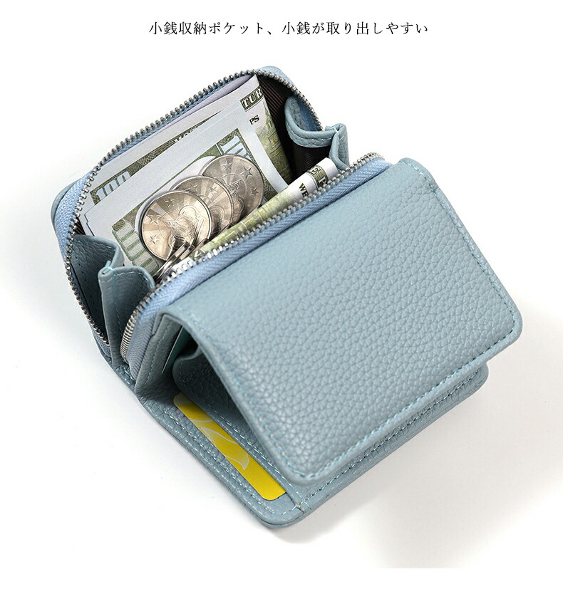 通勤 磁気防止 無地 お札が折れない 実用的 小物 入学祝い 女の子 極小財布 ブルー ゴールド カードたくさん かぶせ ICカード WALLET