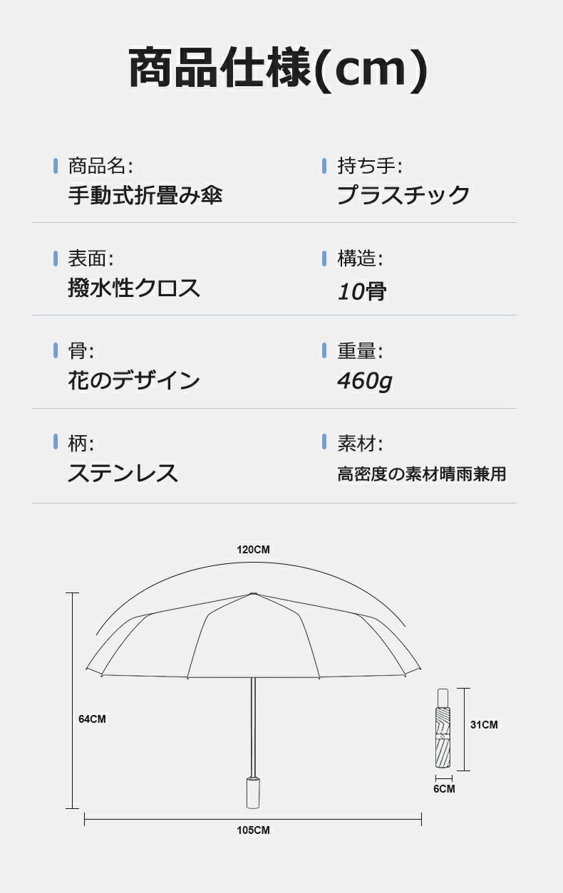 日傘 折りたたみ傘 雨傘 10本骨 手動開閉 メンズ レディース 折り畳み傘 晴雨兼用 撥水 梅雨対策 男女兼用 丈夫 UVカット 大きな傘面 遮光 遮熱 風に強い 傘 逆戻り防止 紫外線対策 頑丈
