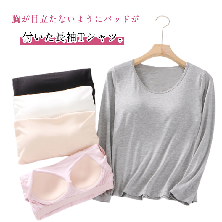 パット付長袖Tシャツ ロンT 締め付け レディース インナー 下着 ブラトップ 大人気! 白 灰色 黒 肌色 ピンク M L XL 2XL 3XL