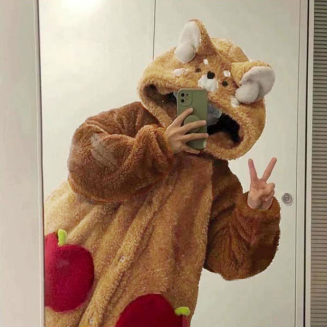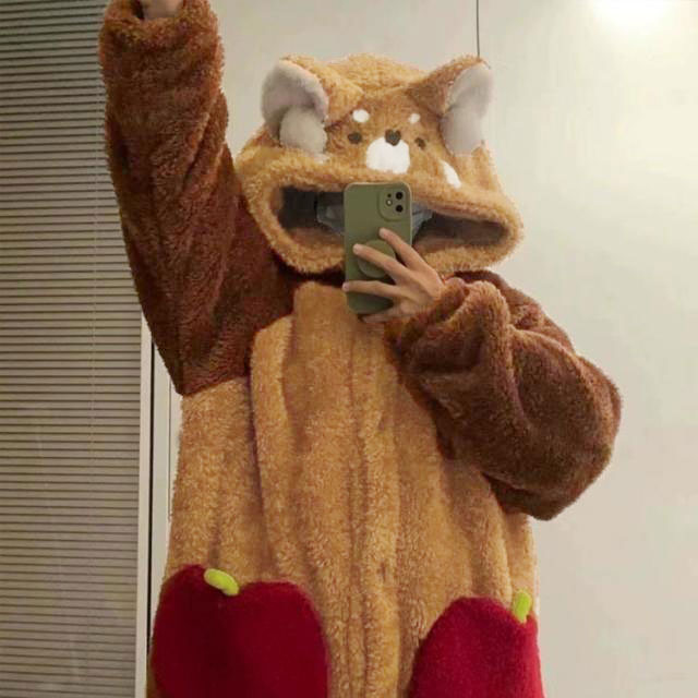 もこもこ くま柄 着ぐるみ ルームウェ S M L XL