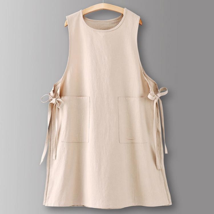 エプロンワンピース ノースリーブ ミド キッチン用品 食器 調理器具 続々登場 オフホワイト ネイビー グレー ダークグリーン