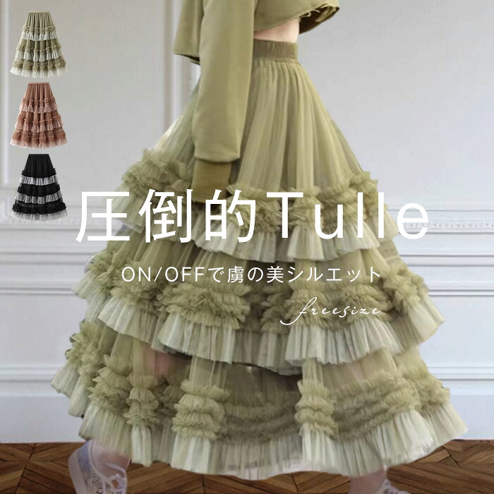 チュールスカート レディース スカート レディースファッション 人気 ブラック ブラウン グリーン