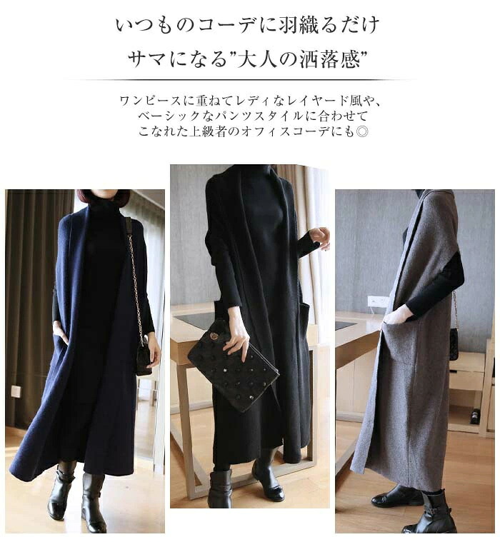 ロングジレ ベスト レディース マキシ トップス ベスト 豊富な品揃え グレー ネイビー レッド ブラック M L