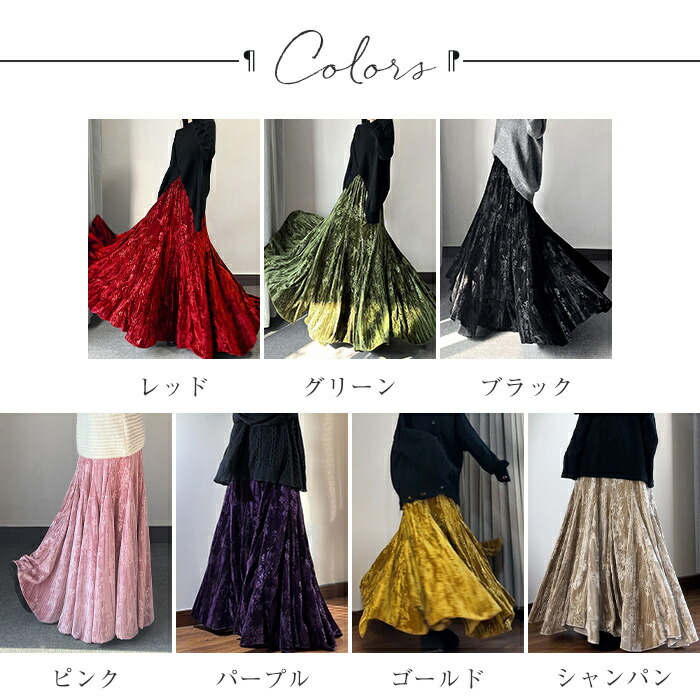 Aラインスカート スカート レディース レディースファッション 通販 レッド グリーン ブラック ピンク パープル ゴールド シャンパン M L XL 2XL