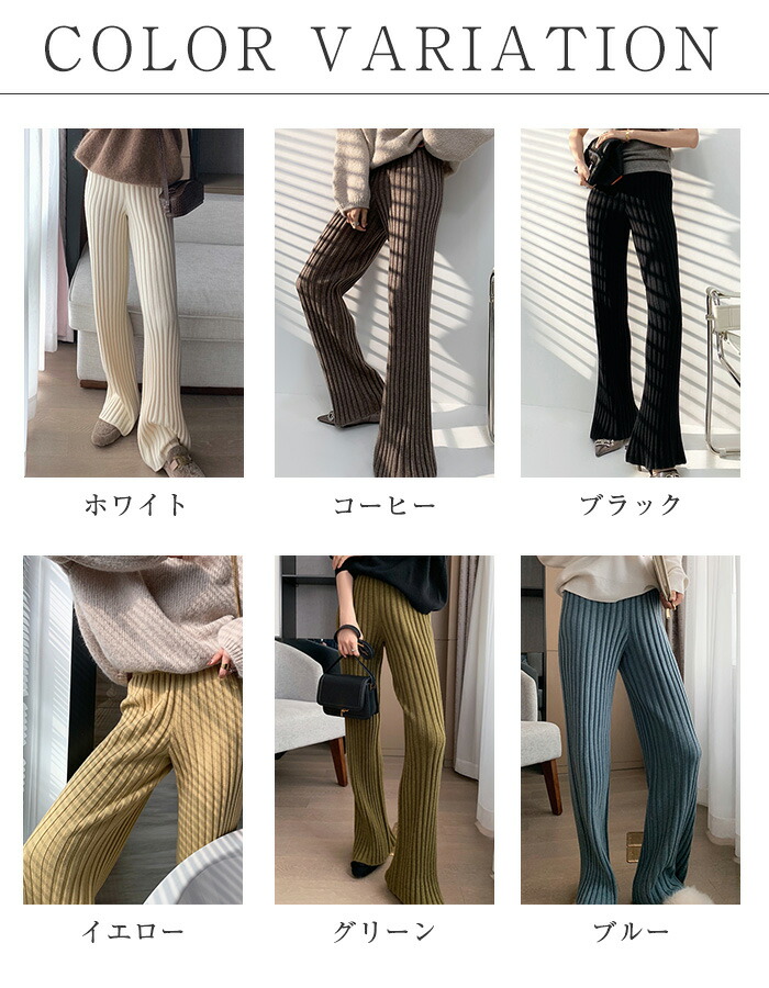 パンツ レディース ニットパンツ 春 レディースファッション 続々登場 ホワイト コーヒー ブラック イエロー グリーン ブルー