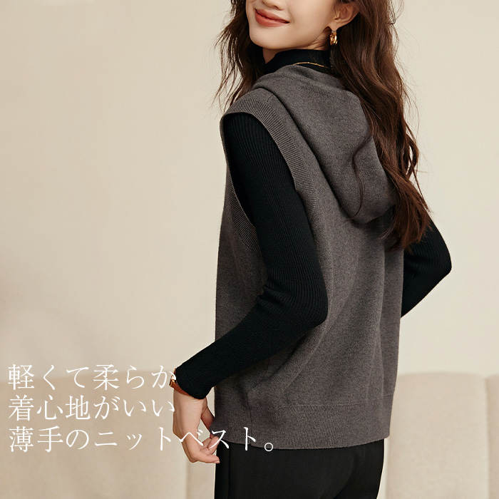 ニットベスト フード付き レディース レディースファッション 続々入荷中 S M L XL