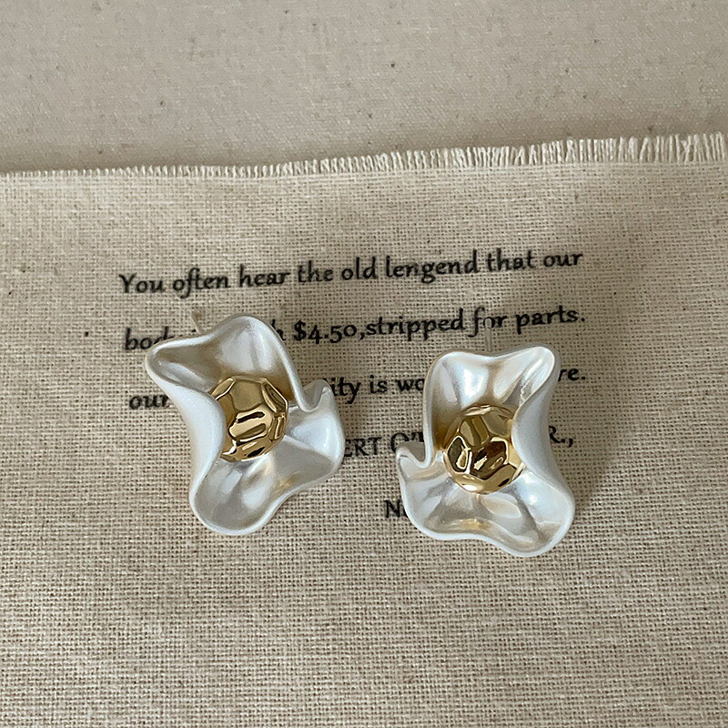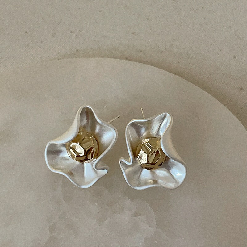 花びらにメタルボールを合わせた、シンプルでフェミニンなデザインのピアス。