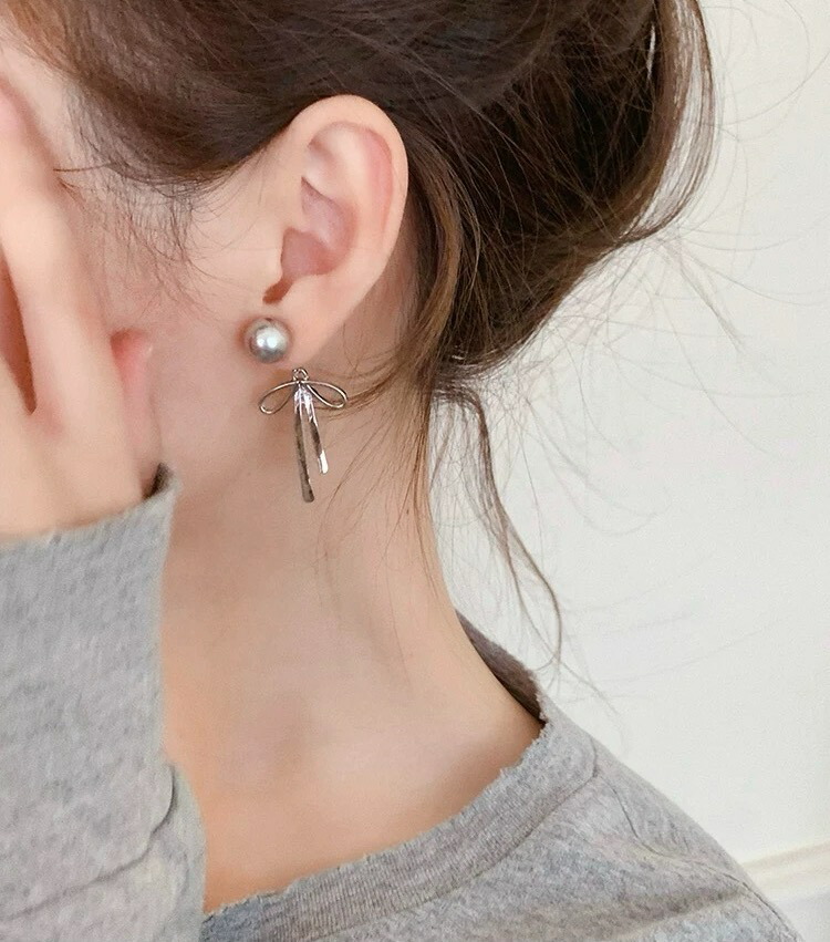 ピアス メタルロングリボンピアス パールピアス シルバーバックキャッチピアス おしゃれ シンプル レデイースアクセサリー 大人可愛い