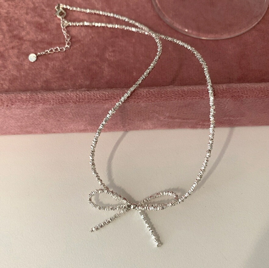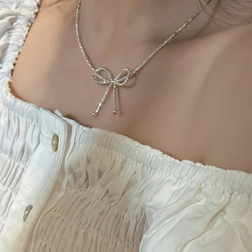 リボンモチーフネックレス レデイースネックレス シンプル おしゃれ 大人可愛い トレンド レデイースアクセサリー シルバー
