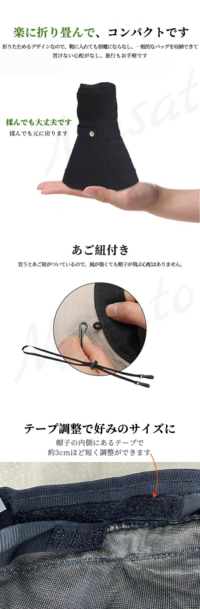 帽子 レディース 大きいサイズ 完全遮光 遮光100% UVカット つば広 折りたたみ 自転車 飛ばない 日よけ サイズ調整 春夏 母の日 運動会 UV あご紐 小顔効果 洗濯機OK