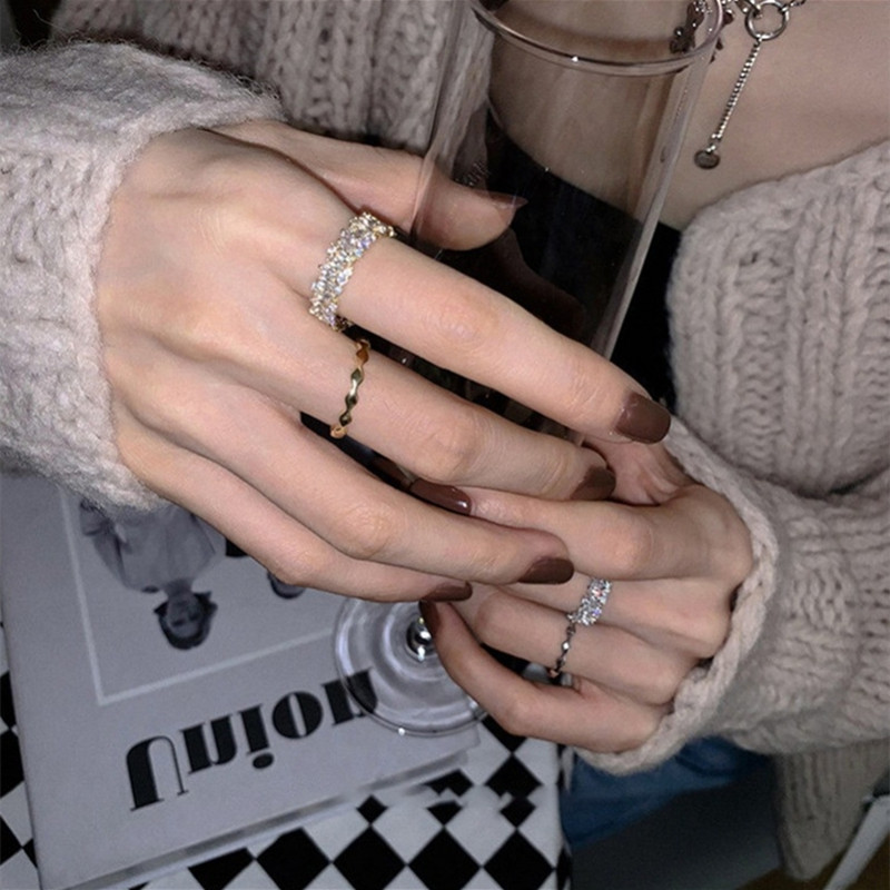 リング2点セット ペアリング フリーサイズ デザインリング レデイース 指輪 おしゃれ ゴールド キラキラ ビジュー