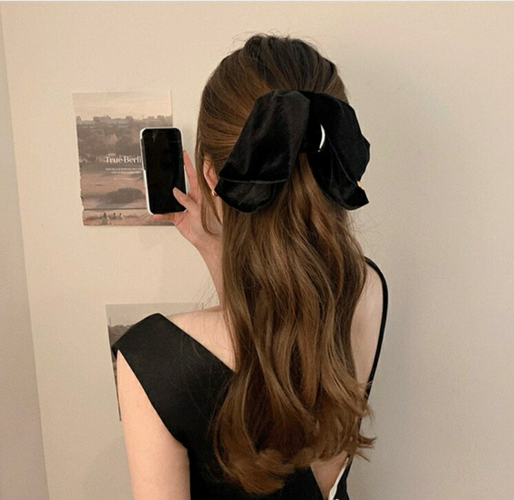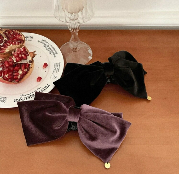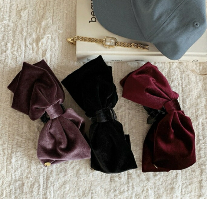 ベロアリボンヘアクリップ ベルベット ジュエリー アクセサリー 人気 ブラック ワインレッド ブラウン 紫色