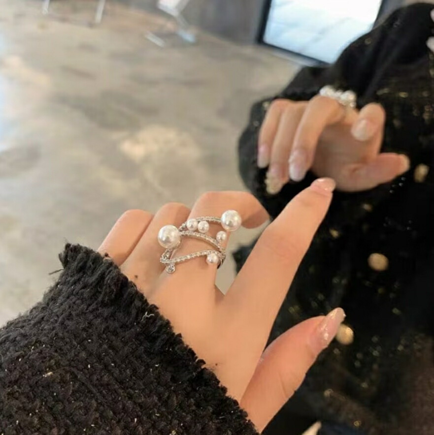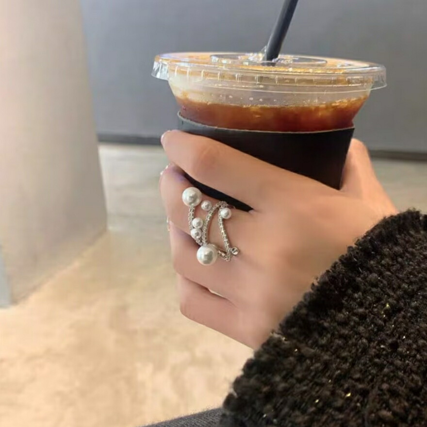 パールデザインリング 指輪 リング おしゃれ シルバー フリーサイズ アクセサリー レディースジュエリー 調節可能ジュエリー