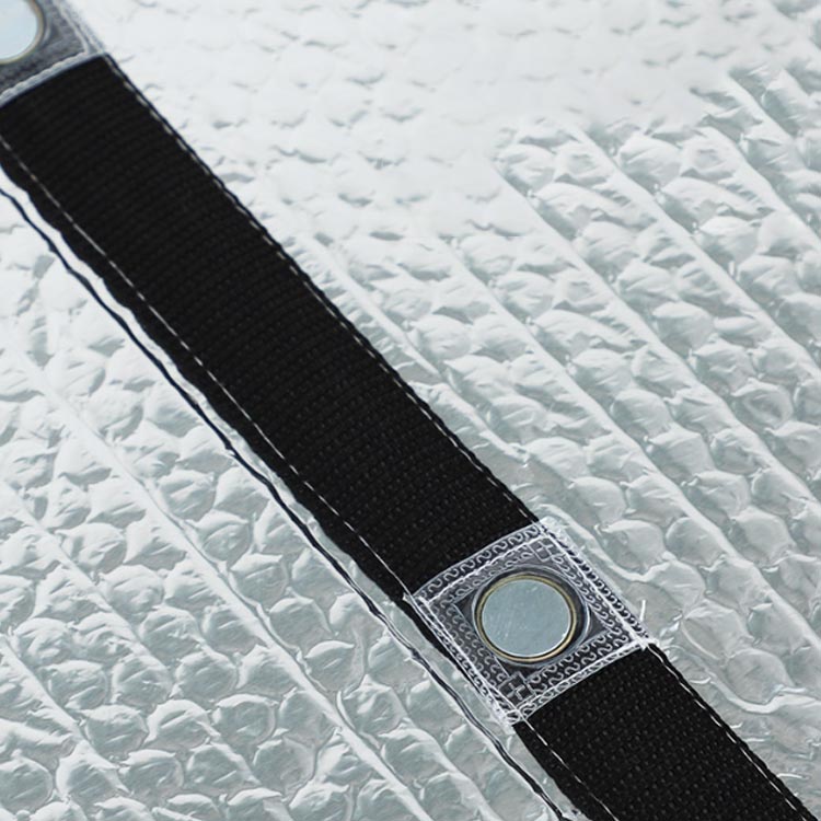 この遮熱シートは、アルミ箔のコーティングと表面の凹みの原理を利用して太陽光を反射し、断熱効果を実現します。