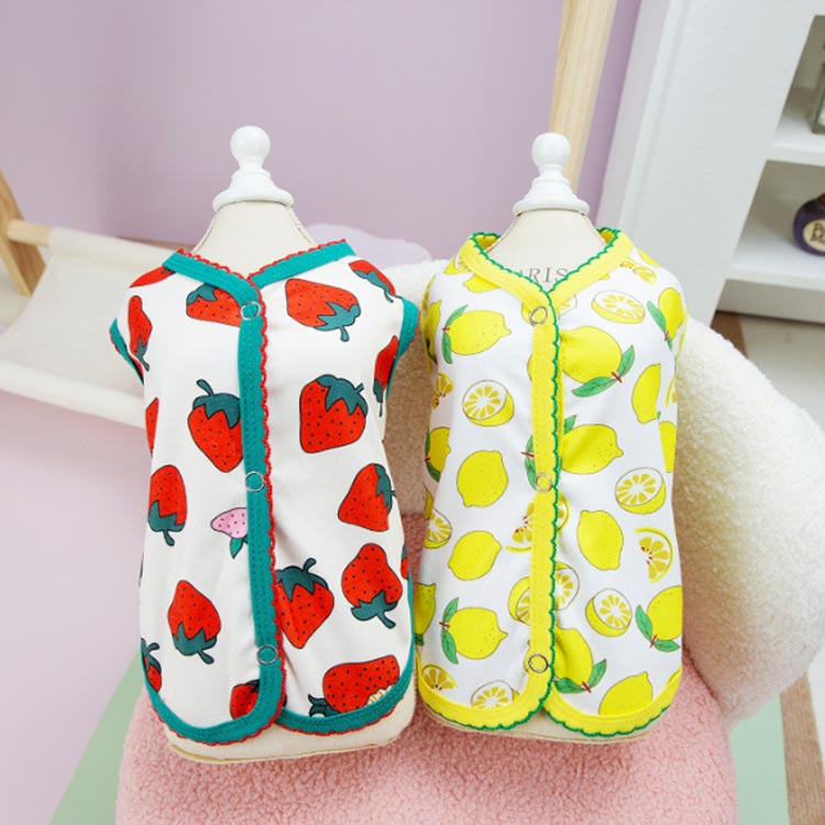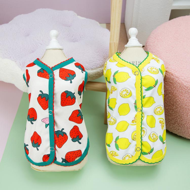ペット服 レモン柄 可愛い 柔らかい ベスト 猫服 薄手 タンクトップ 着せやすい お洒落 いちご柄 抜け毛防止 お部屋着 犬服 女の子 暖かい 犬用 猫用 男の子 インスタ映え 小型犬 洋服