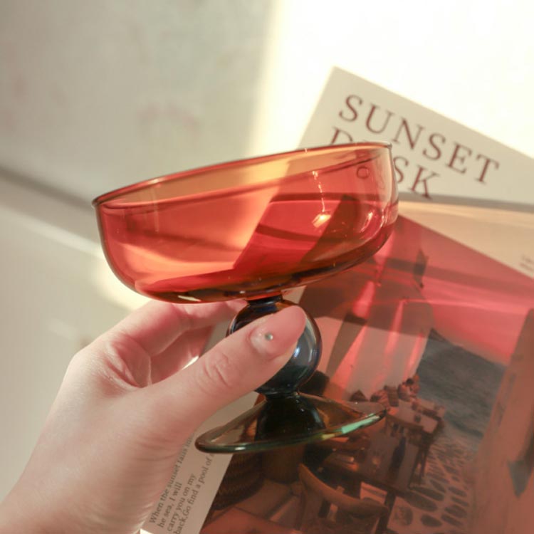 ポップなカラーがレトロ感を感じさせる、かわいいガラスのアイスカップ。