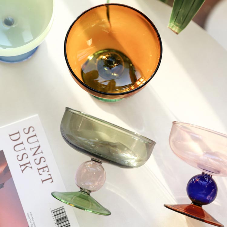 ポップなカラーがレトロ感を感じさせる、かわいいガラスのアイスカップ。
