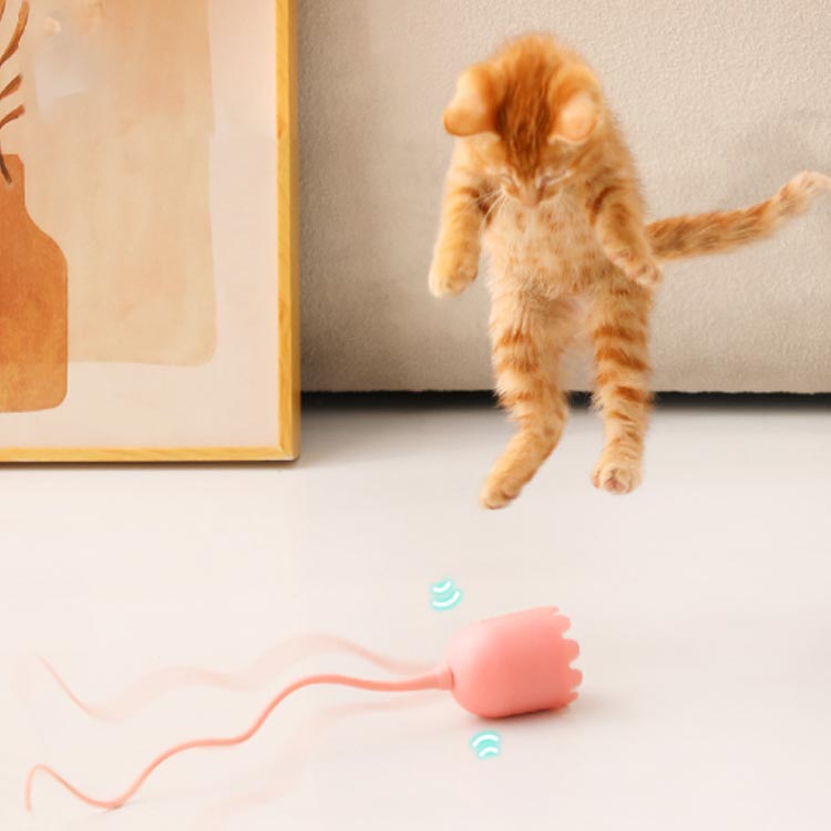 [不規則なローリング-自動オン/オフ]:自動猫用おもちゃの動作中、異なる回転速度や回転形状を変化させて、猫の狩りの本能を刺激し、2秒間長押しすると、おもちゃの電源がオンになり、青色灯が点滅し、尾が回転し始め、停止するには、スタンバイで3分間実行すると、猫が触れ、おもちゃは、 振動が再びオンになります感知し、運動時間の3分を取得し、おもちゃをトリガせずに15分、それは自動的にオフに切り替わります。