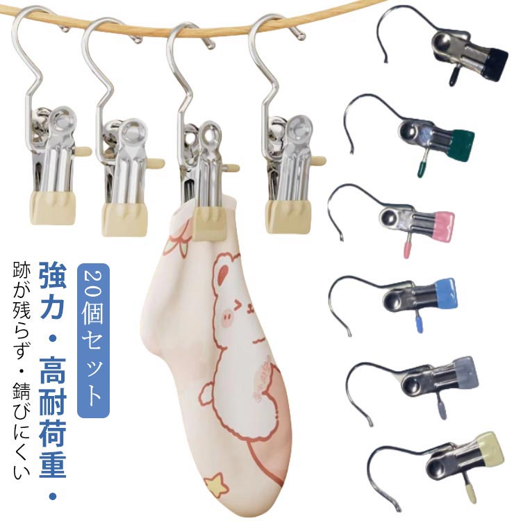 クリップ フック ランドリーフック クリップフック ステンレス製 洗濯バサミ ハンガー ステンレス 強力 竿ばさみ 大口サイズ ピンチフック 小物ハンガー 靴下クリップ 飛ばない クリップハンガー