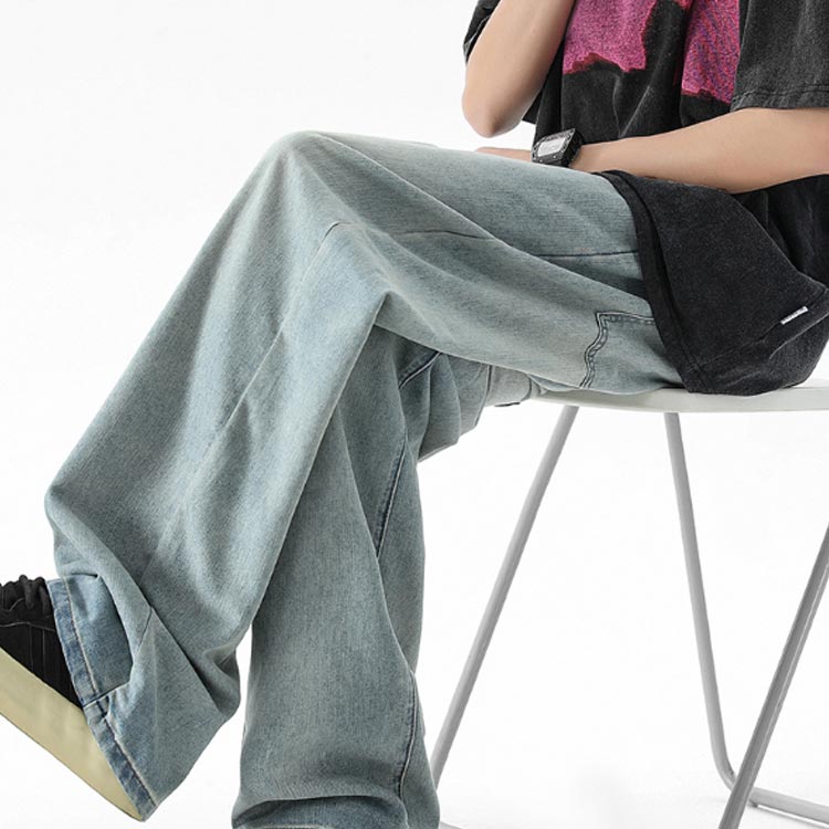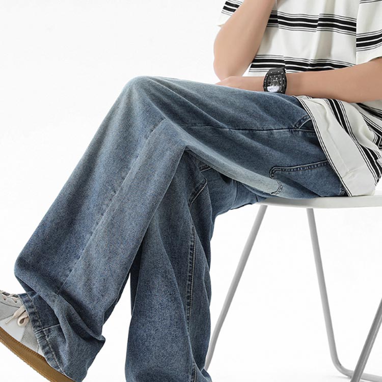 デニムワイドパンツ ストレート ダメー メンズファッション 続々登場 ライトブルー ダークブルー M L XL 2XL 3XL
