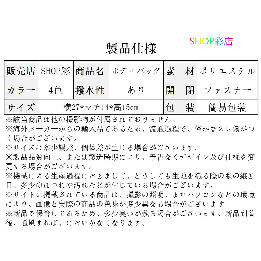 ※※ベルト、飾りやインナーなどは含みません。商品情報商品名 ボディーバッグ メンズ レーディス ショルダーバッグ 撥水 円柱型 おしゃれ 斜め掛け ボディバッグ コンパクト 旅行 海外旅行 横型 ワンショルダーバッグ 通勤 通学 アウトドア 斜めがけバッグ ミリタリー素材 ポリエステルカラー グレー|ブラック|オリーブ|ダークブルーサイズ 各サイズの寸法については画像のサイズ表にご参照ください。生産国 中国包装について 環境保護の観点から、「簡易包装」を推進しております明細書について 当店ではエコロジーと個人情報流出防止のため、ご指示の無い限り明細書を発行しておりません。