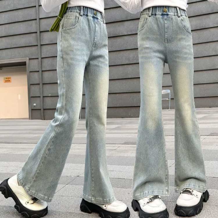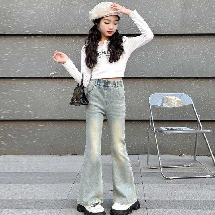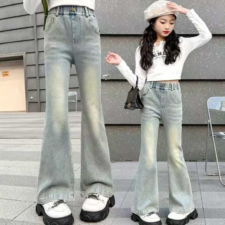 女の子 デニムパンツ 子供服 キッズ ジーンズ ボトムス 長ズボン おしゃれ パンタロン フレアパンツ 学生 デニム ロングパンツ 可愛い 演出 散歩 発表会 入学式 普段着 ブルー 110cm 旅行